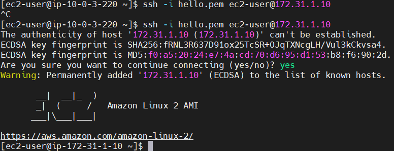 SSH Test ( Seoul Region - Private Subnet - EC2 ⇒ Virginia Region - Private Subnet - EC2 )