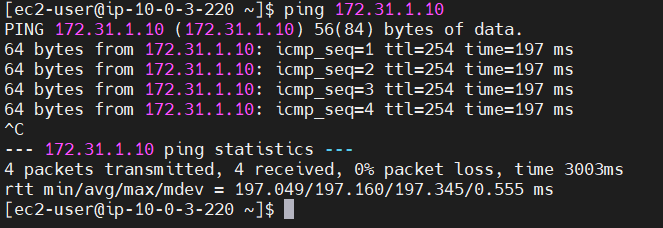64 bytes from 172.31.1.10: icmp_seq=3 ttl=255 time=196 ms