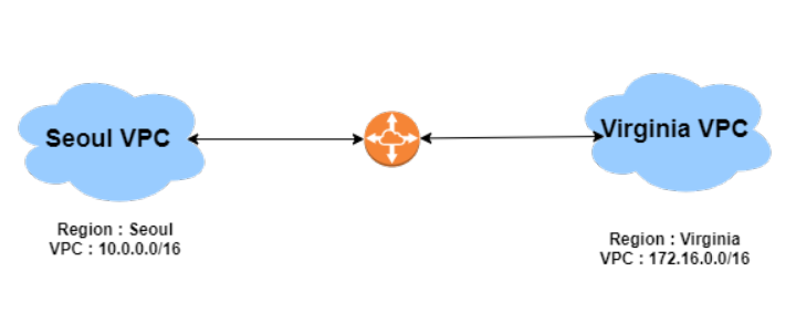 서울 리전 AWS VPC(10.0.0.0/16) <-> 미국(버지니아 북부) 리전 AWS VPC(172.31.0.0/16)