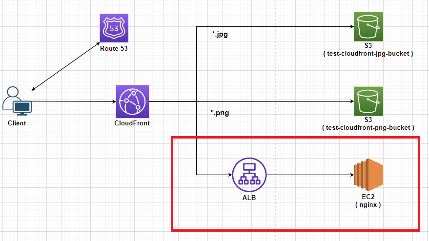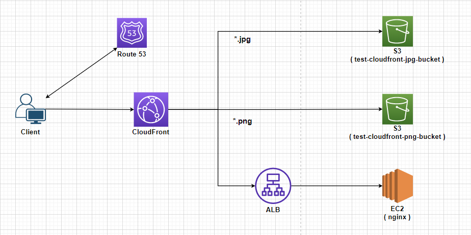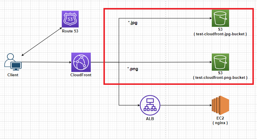 - CloudFront에서의 Behavior로 인하여 클라이언트가 *.jpg 혹은 *.png 파일에 대해 요청할 경우 S3로 요청이 가게 된다.