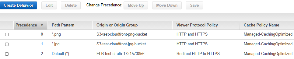 - example.com/*.jpg 에 대한 컨텐츠 요청은 A 버킷으로 CloudFront가 요청하고 example.com/*.png에 대한 컨텐츠 요청은 B 버킷으로 CloudFront가 요청하고⇒ CloudFront의 Behavior을 적절히 설정해주면 됩니다.