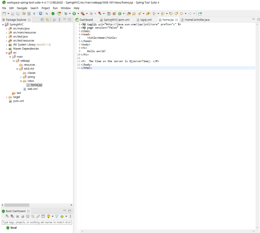 : home.jsp가 있으며, 기본적인 서버의 시각을 알려주는 Demo Web Application이다.