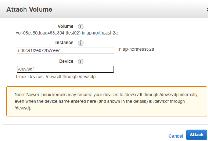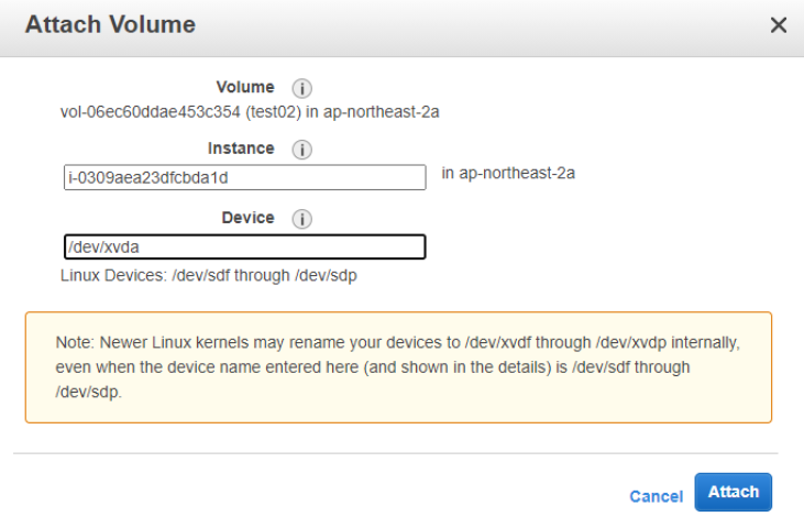 - 떼어낸 볼륨을 다른 Instance에 Attach하기