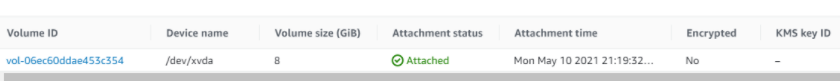 - Root Volume 떼어내기 (인스턴스에 붙어 있는 Root Volume 정보 적어둘 것 => 나중에 다시 Root Volume을 붙일 때 동일한 Device Name (/dev/xvda)으로 붙여야 하기 때문 )