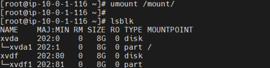 - 이후 mount 명령어로 떼어낸 볼륨을 마운트 할 수 있을 것임