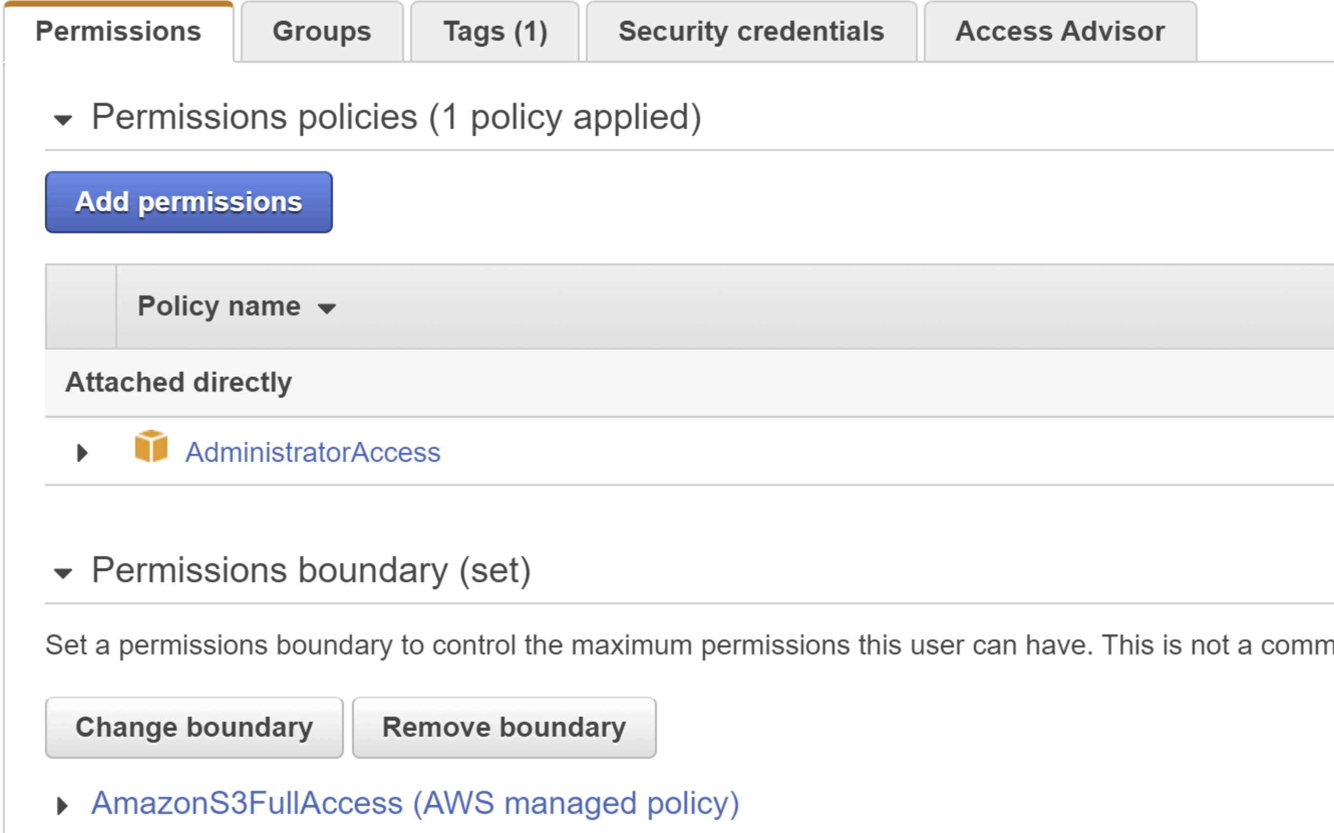 ⇒ 여기서 추측할 수 있는 부분은 AdministratorAccess와 S3FullAccess의 교집합인 S3FullAccess 권만 가질 수 있을 것이라 추측할 수 있다.