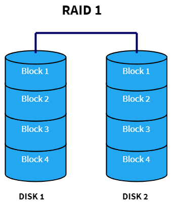 2. RAID 1 // Mirroring 방식 // 최소 2개 이상의 하드디스크 요구